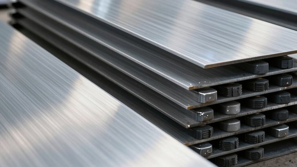 Steel plates are thick sheets of hardened metal used for structural support, protection, or reinforcement in various applications. Their material composition typically includes high-strength steel alloys designed to withstand impact and stress. These plates are versatile, found in construction, manufacturing, and security systems. Installation methods vary based on use; they can be bolted, welded, or fastened with specialized adhesives. Proper installation guarantees stability and durability, whether you’re reinforcing a building, creating a barrier, or adding a protective layer. To ensure their effectiveness, understanding the material composition and Installation methods of steel plates helps you determine their suitability for your specific needs. Additionally, the sound insulation properties of steel plates can influence how they absorb or transmit noise in different environments, especially considering their impact on noise transmission.