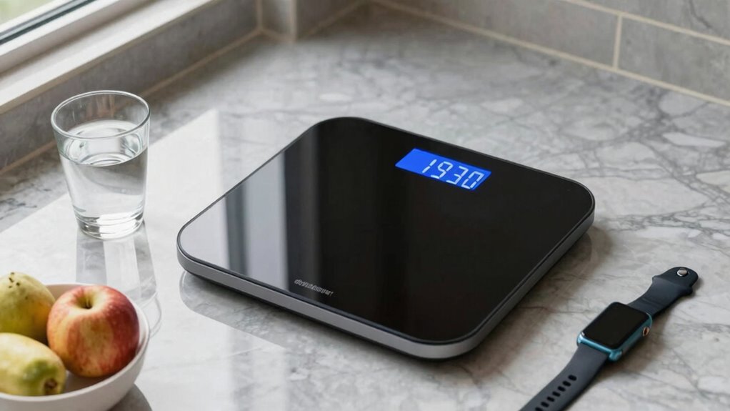 Time of day markedly influences your scale measurements because your body’s fluid levels and digestion vary throughout the day. Morning readings tend to be lower due to overnight fasting, while evening measurements can be higher after eating and daily routines. To get consistent results, weigh yourself at the same time each day, ideally in the morning, and consider how your daily routines impact your weight fluctuations.