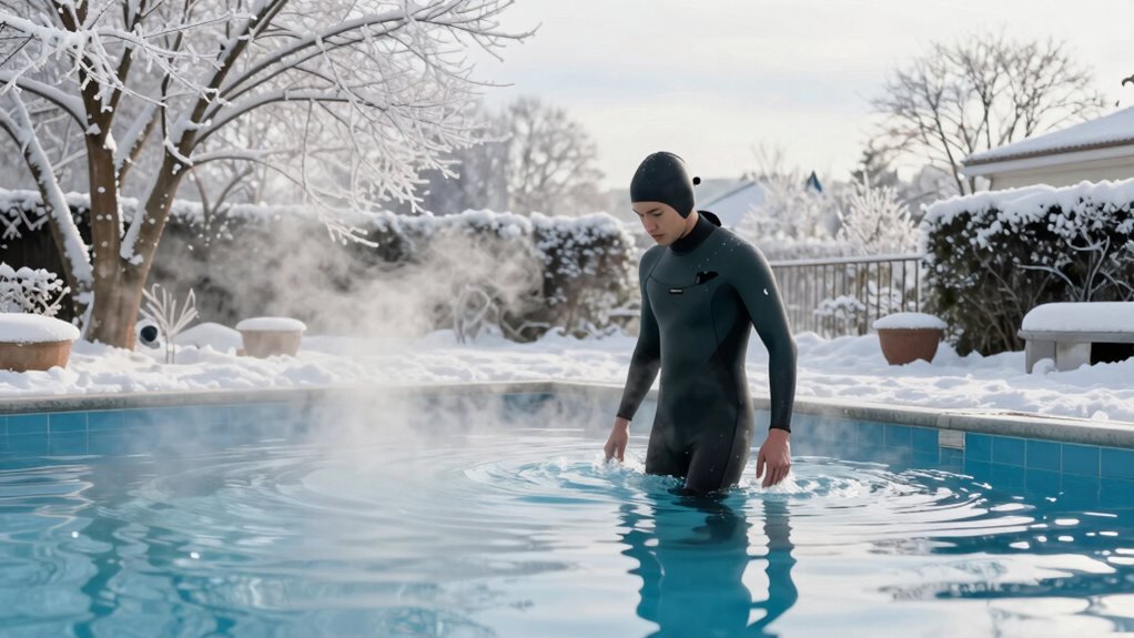 Recognizing physical warning signs during a cold plunge is essential because your body signals when it’s time to stop or seek help. Pay attention to the shivering response, which indicates your body is trying to generate heat. Skin numbness is another critical sign, showing your extremities aren’t receiving enough circulation. You might also notice dizziness or weakness, signaling your body is overwhelmed. Sudden loss of coordination or intense discomfort are clear signals to exit immediately.