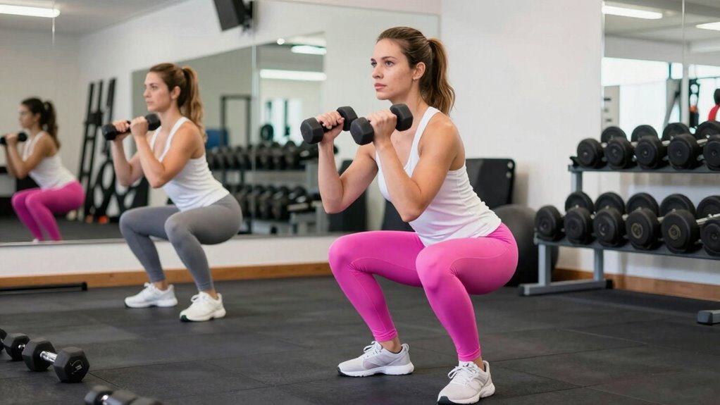 Starting dumbbell workouts is a smart choice for beginners because they offer a versatile and accessible way to build strength. Dumbbells allow you to target multiple muscle groups effectively, guaranteeing proper muscle activation with each movement. Plus, they promote balanced development and help prevent muscle imbalances. When you use dumbbells, it’s vital to prioritize dumbbell safety by starting with lighter weights and maintaining good form. This reduces the risk of injury and makes sure you engage muscles correctly. Dumbbell exercises also improve coordination and stability because they require more control than machines. As a beginner, using dumbbells helps you develop a solid foundation for future training, making your workouts safer and more effective from the start. Proper technique is essential to maximize benefits and minimize risks.