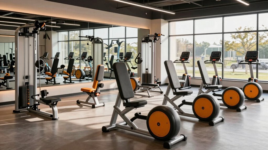 Choosing the right functional trainer can feel overwhelming, especially if space is tight. I recommend considering the machine’s footprint first; some compact trainers occupy as little as 4.72 square feet, perfect for apartments or small gyms. Wall-mounted designs are fantastic, as they fold away when not in use, freeing up floor space. Look for adjustable height settings for pulleys, which help adapt various exercises in limited areas. It’s essential to check the total weight capacity and construction materials too; sturdy machines guarantee stability during intense workouts. Finally, machines with multiple exercise stations—like cable crossovers and pull-up bars—let you enjoy a thorough workout without needing extra equipment. Prioritizing these features will make your selection process much easier!