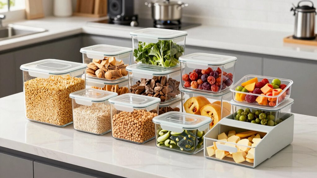Choosing the right food storage system balances practicality and elegance, much like selecting a perfect piece of jewelry amidst everyday essentials. While some crave the sleekness of glass containers, others prioritize adjustable dividers or space-saving designs. Ultimately, your choice reflects not just your kitchen’s needs but your lifestyle’s rhythm. By weighing these options, you’ll find a system that’s both functional and beautiful—transforming clutter into a curated space where organization meets artistry.