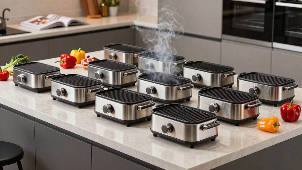 When it comes to finding the best premium indoor smokeless grills for 2026, I’ve put together an exceptional list just for you. From versatile options like the Ninja Electric Griddle and Chefman Electric Smokeless Indoor Grill to features like adjustable temperatures and smoke management technology, there’s something perfect for your cooking needs. With so many impressive choices available, you won’t be disappointed. Stick around to discover even more about these amazing grilling solutions!