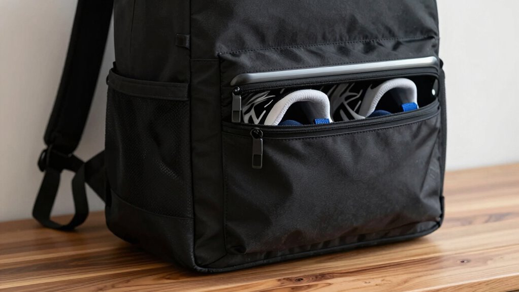 A well-designed shoe compartment can make a significant difference in how your lifting backpack functions, especially when it comes to keeping your gear clean and odor-free. It should be spacious enough to fit various shoe sizes while keeping shoes separate from clean clothes. Look for compartments with ventilation or breathable materials to promote airflow, reducing moisture and odor buildup. The placement of the compartment matters too; ideally, it should be at the bottom or side for easy access without disrupting the main storage area. Flexibility is a plus—some compartments can expand or fold away when not needed, maintaining a sleek look. Durability is key; choose materials that are tear-resistant and easy to clean for long-lasting performance and minimal maintenance.