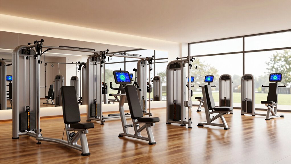 Setting up these smart resistance machines is like fitting a puzzle piece into your home; typically, you’ll need about 4 to 6 square meters of space. I recommend leaving extra room around for safe movement and adjustments. Most models are compact, but check the specific dimensions to verify your workout area isn’t cramped. Trust me, creating the right space makes your fitness journey smoother and more enjoyable.