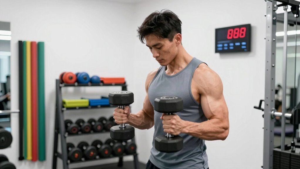 While cardio can complement your muscle-building efforts, it shouldn’t overshadow your weight training. Cardio vs weights often sparks debate, but in a time-crunched schedule, your priority should be resistance training. Short, high-intensity sessions can boost endurance without taking away from recovery time. If you do include cardio, keep it brief—20 to 30 minutes of HIIT, for example—so it supports your goals without compromising muscle recovery. Ultimately, balancing these elements ensures you make steady progress, even with a packed timetable. Focus on smart splits, prioritize rest, and integrate targeted cardio to maximize your muscle-building potential efficiently.